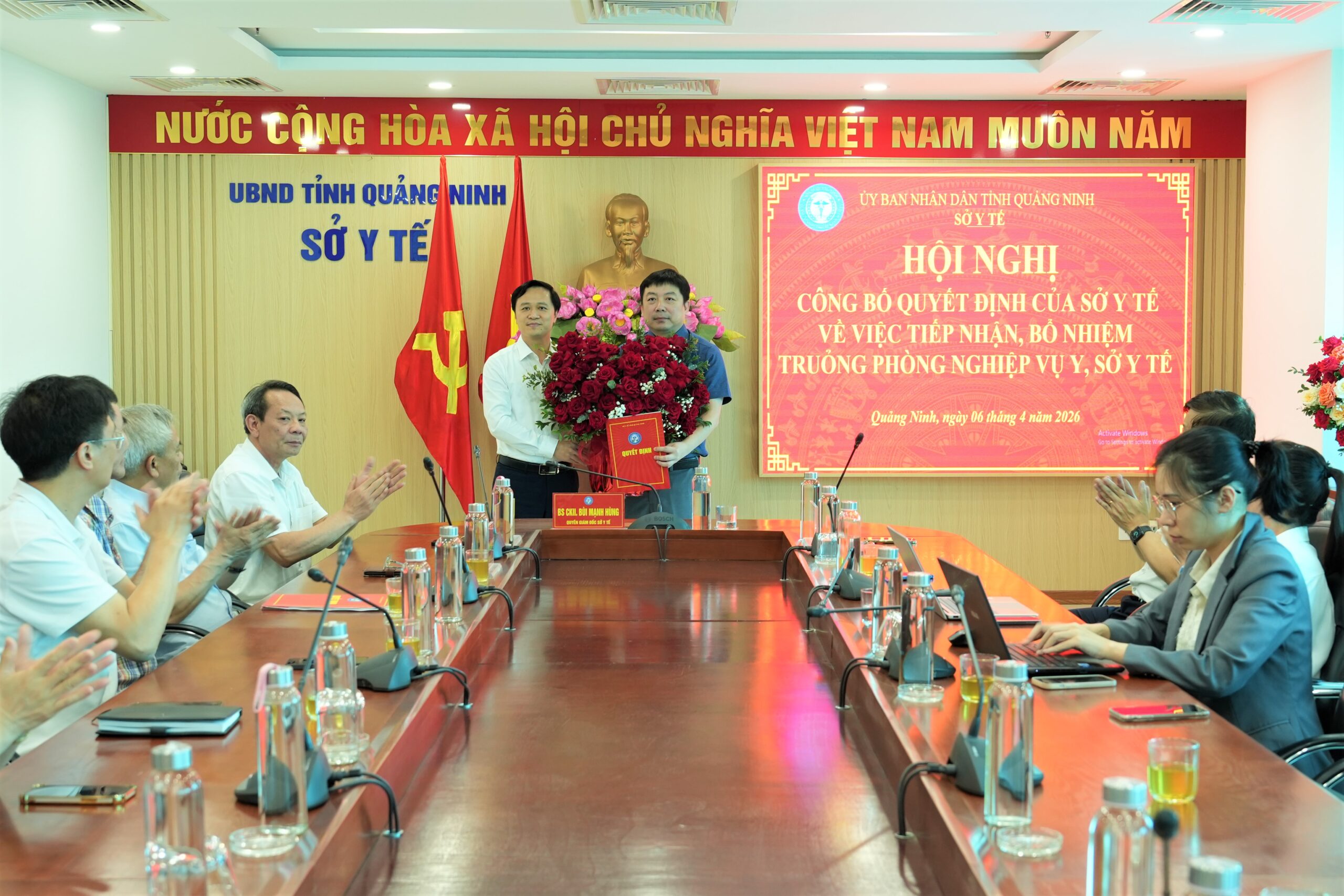 Chiều ngày 6/4/2026, Sở Y tế Quảng Ninh tổ chức hội nghị công bố và trao quyết định về công tác cán bộ. BSCKII Bùi Mạnh Hùng, Quyền Giám đốc