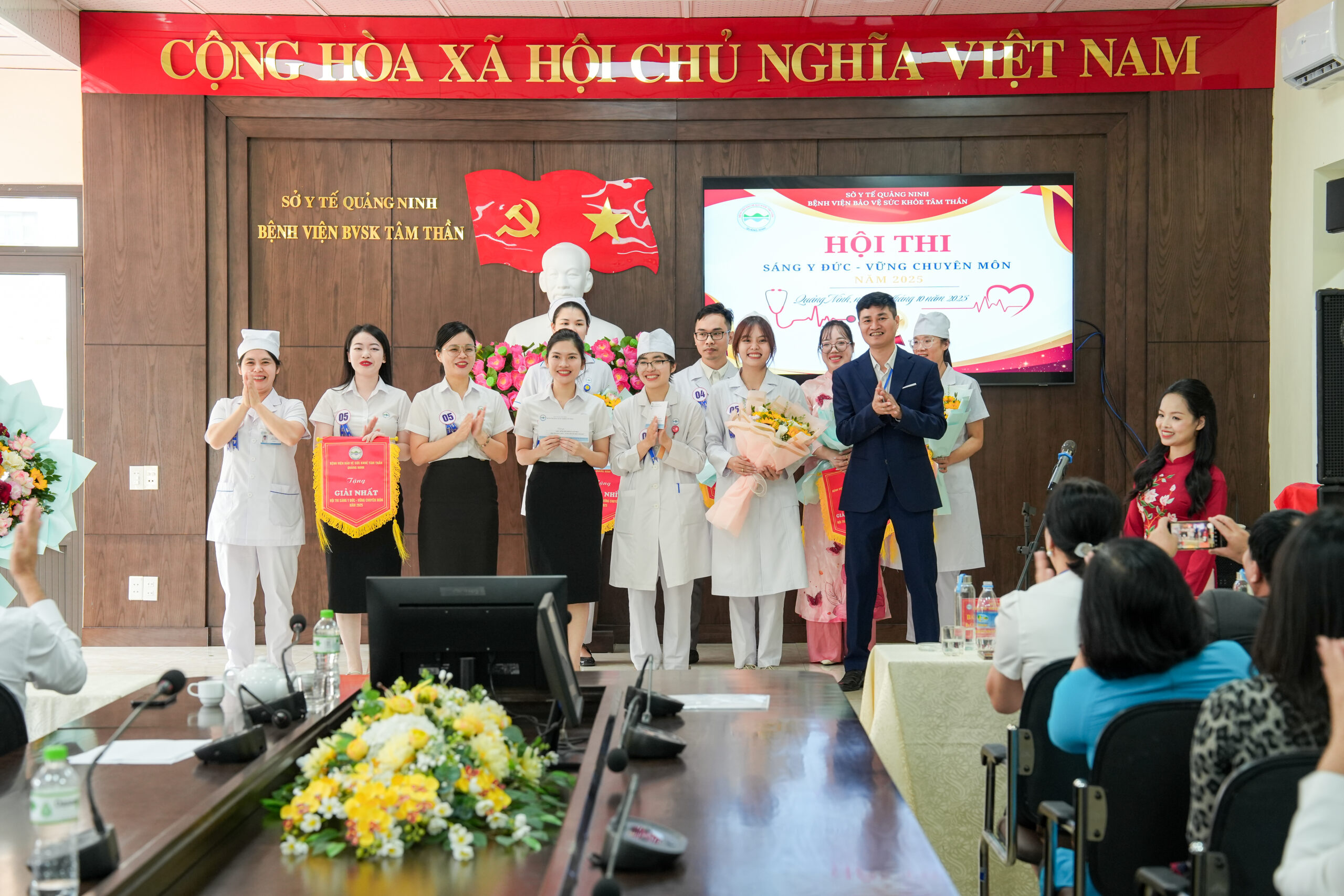 Hưởng ứng phong trào thi đua “Đổi mới phong cách, thái độ phục vụ của cán bộ y tế hướng tới sự hài lòng của người bệnh” và thực hiện Bộ tiêu chí đánh giá chất lượng bệnh viện, sáng ngày 25/10/2025, tại Hội trường Bệnh viện Bảo vệ Sức khỏe Tâm thần Quảng Ninh, đã diễn ra Hội thi “Cán bộ nhân viên sáng y đức, vững chuyên môn” năm 2025 với không khí sôi nổi, đoàn kết và đầy ý nghĩa.