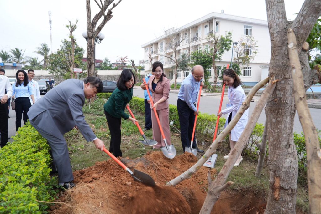 Bộ trưởng Bộ Y tế Đào Hồng Lan cùng lãnh đạo tỉnh Quảng Ninh, lãnh đạo Sở Y tế, trồng cây lưu niệm tại Trung tâm Y tế TX Quảng Yên