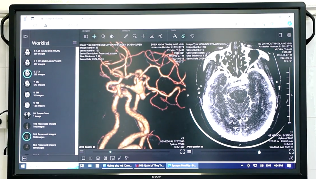 Bà Nguyễn Thị Tí (60 tuổi, ở xã Tiên Yên), bị đau nửa đầu phải nhiều năm, đã đi khám và dùng thuốc vài đợt nhưng không thuyên giảm. Mới đây khi đi khám tại Bệnh viện Đa khoa tỉnh Quảng Ninh, qua kết quả chụp MRI sọ não, các bác sĩ phát hiện một túi phình mạch máu não ở động mạch cảnh trong bên phải và lớn dần qua các lần theo dõi. Phim chụp cho thấy túi phình trong não bệnh nhân lồi hẳn lên thành mạch. Đây là nguyên nhân gây ra những cơn đau đầu dai dẳng mà bà Tí phải chịu đựng nhiều năm qua và là một thể dị dạng mạch máu não có tỷ lệ mắc cao.