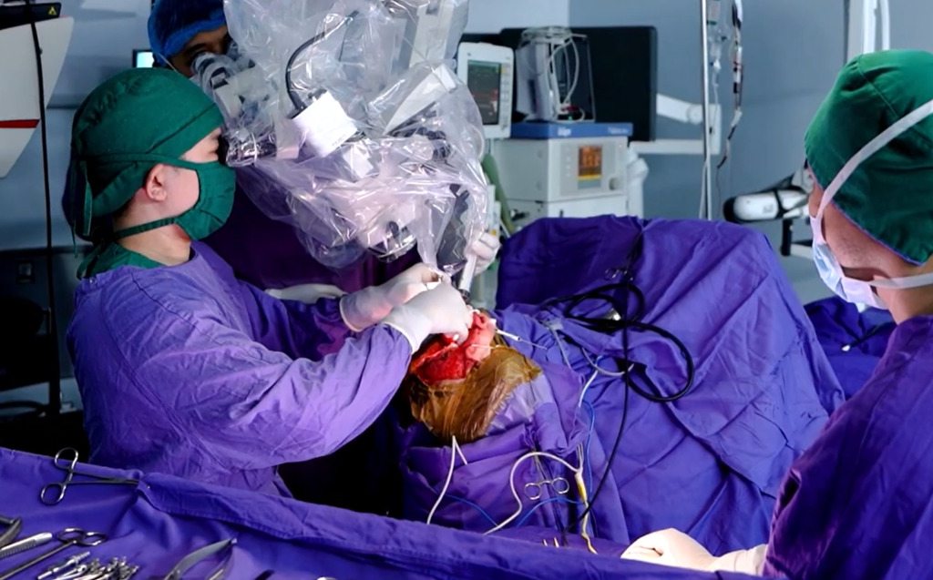 Các bác sĩ Bệnh viện đa khoa tỉnh Quảng Ninh đang thự hiện một ca phẫu thuật dị dạng mạch máu não