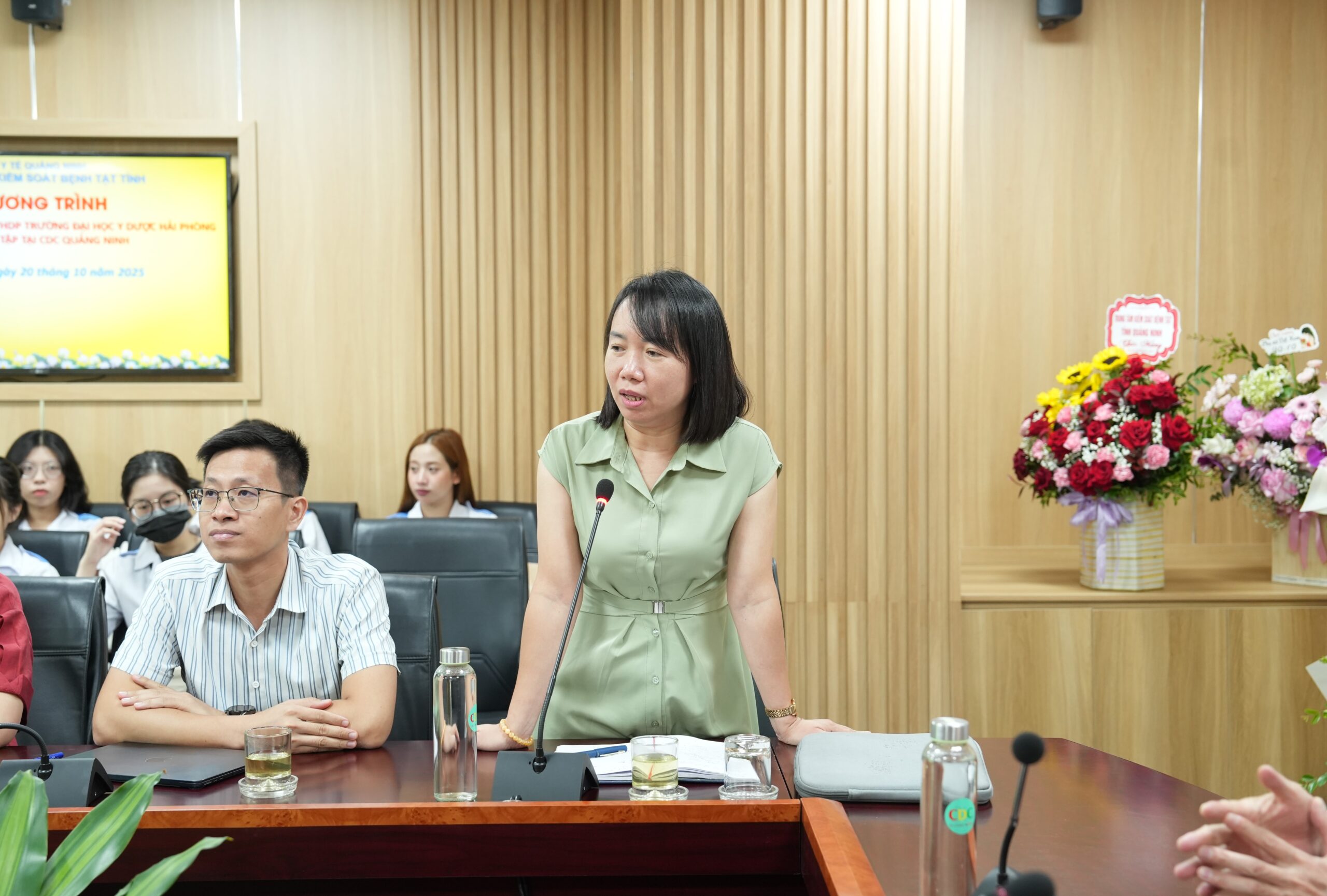 Về phía Trường Đại học Y Dược Hải Phòng, Tiến sĩ Hoàng Thị Giang – Trưởng khoa Y tế Công cộng, bày tỏ sự trân trọng và cảm ơn sự hợp tác của CDC Quảng Ninh: “Chúng tôi đánh giá cao tinh thần phối hợp của CDC Quảng Ninh trong công tác đào tạo, hướng dẫn sinh viên. Đây là môi trường thực tế quý giá để sinh viên được quan sát, tham gia và hiểu sâu hơn về công tác y tế dự phòng, từ đó trưởng thành hơn trong nghề nghiệp tương lai.”