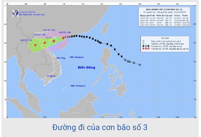 Theo Trung tâm Dự báo khí tượng thuỷ văn quốc gia, bão số 3 (tên quốc tế là Wipha) đang di chuyển nhanh, có cường độ rất mạnh và ảnh hưởng trực tiếp đến tỉnh Quảng Ninh từ chiều tối ngày 21/7. Gió giật mạnh, mưa lớn kéo dài cùng nguy cơ lũ quét, ngập úng, sạt lở đất đang đặt ra yêu cầu cấp thiết trong việc đảm bảo an toàn sức khỏe và phòng tránh thương tích cho người dân.
