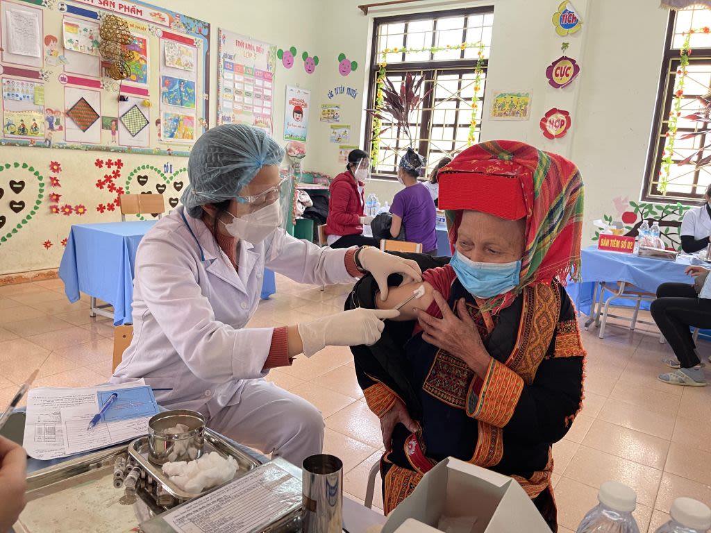 Bác sỹ tiêm vắc- xin phòng Covid-19 cho người dân tại huyện Ba Chẽ.