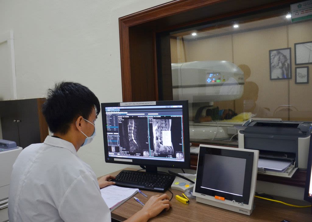 Kỹ thuật viên thực hiện chụp cộng hưởng từ cho người bệnh tại Trung tâm Y tế huyện Hải Hà.