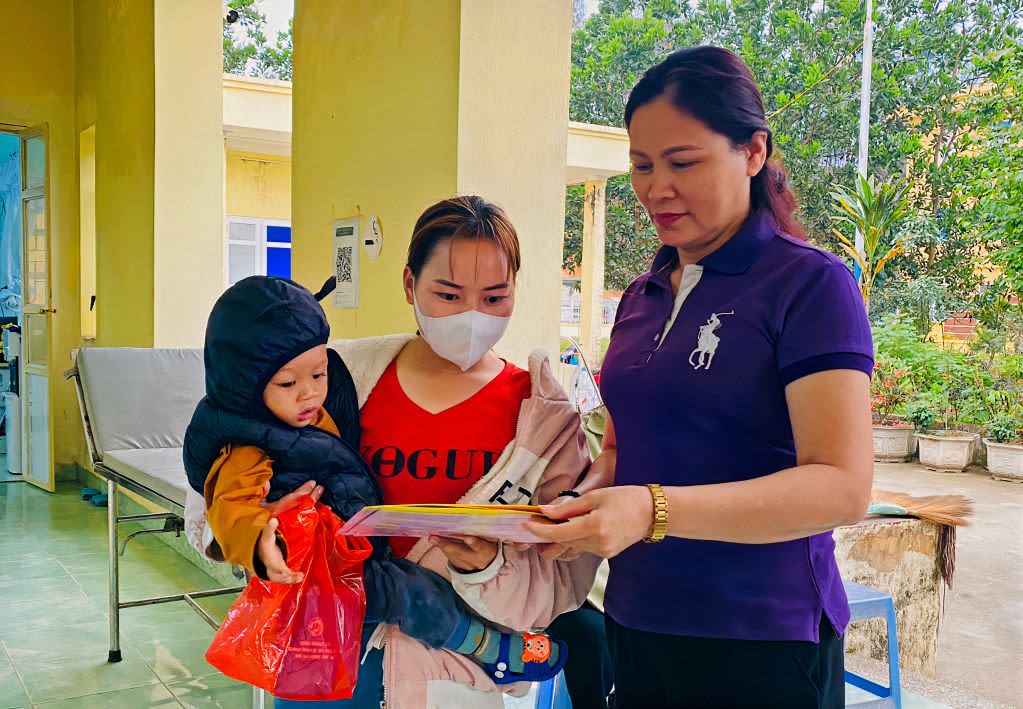 Cán bộ dân số xã Bắc Sơn (TP Móng Cái) truyền thông về SKSS, KHHGĐ cho người dân.