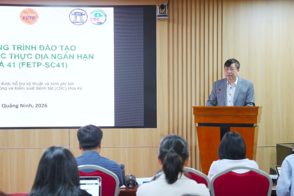 Ngày 16/3/2026, Trung tâm Kiểm soát bệnh tật tỉnh Quảng Ninh phối hợp với Viện Vệ sinh Dịch tễ Trung ương và Chương trình Dịch tễ học Thực địa (FETP) Việt Nam tổ chức khai giảng Khóa đào tạo Dịch tễ học thực địa (FETP) cơ bản dành cho cán bộ y tế dự phòng cấp xã trên địa bàn tỉnh. Đồng chí Nguyễn Minh Tuấn – Phó Giám đốc Sở Y tế Quảng Ninh dự và khai mạc lớp tập huấn.