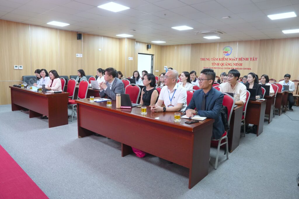 Tham gia khóa đào tạo có 15 cán bộ chuyên trách công tác phòng, chống dịch bệnh đến từ 13 phường, xã, đặc khu của tỉnh Quảng Ninh. Tham dự chương trình còn có PGS.TS Dương Thị Hồng – Phó Viện trưởng Viện Vệ sinh dịch tễ Trung ương; PGS.TS Lê Anh Tuấn – Phó Giám đốc Trung tâm Đào tạo & Khoa học (Viện Vệ sinh dịch tễ Trung ương); TS. Nguyễn Thúy Ly, Trưởng nhóm Phát triển Nguồn Nhân lực, Trung tâm Dự phòng và Kiểm soát Bệnh tật (US CDC) Hoa Kỳ; BS CKI. Nguyễn Minh Tuấn – PGĐ Sở Y tế Quảng Ninh; TS. Vũ Quyết Thắng – Giám đốc CDC Quảng Ninh; BS CKII. Nguyễn Thị Dung – Phó Giám đốc CDC Quảng Ninh cùng lãnh đạo, cán bộ chuyên môn khoa Phòng, chống bệnh truyền nhiễm của đơn vị.