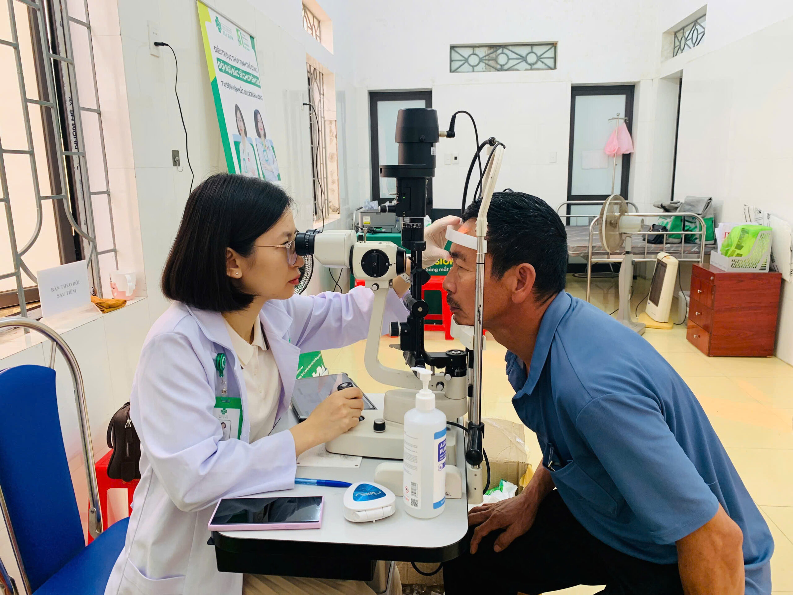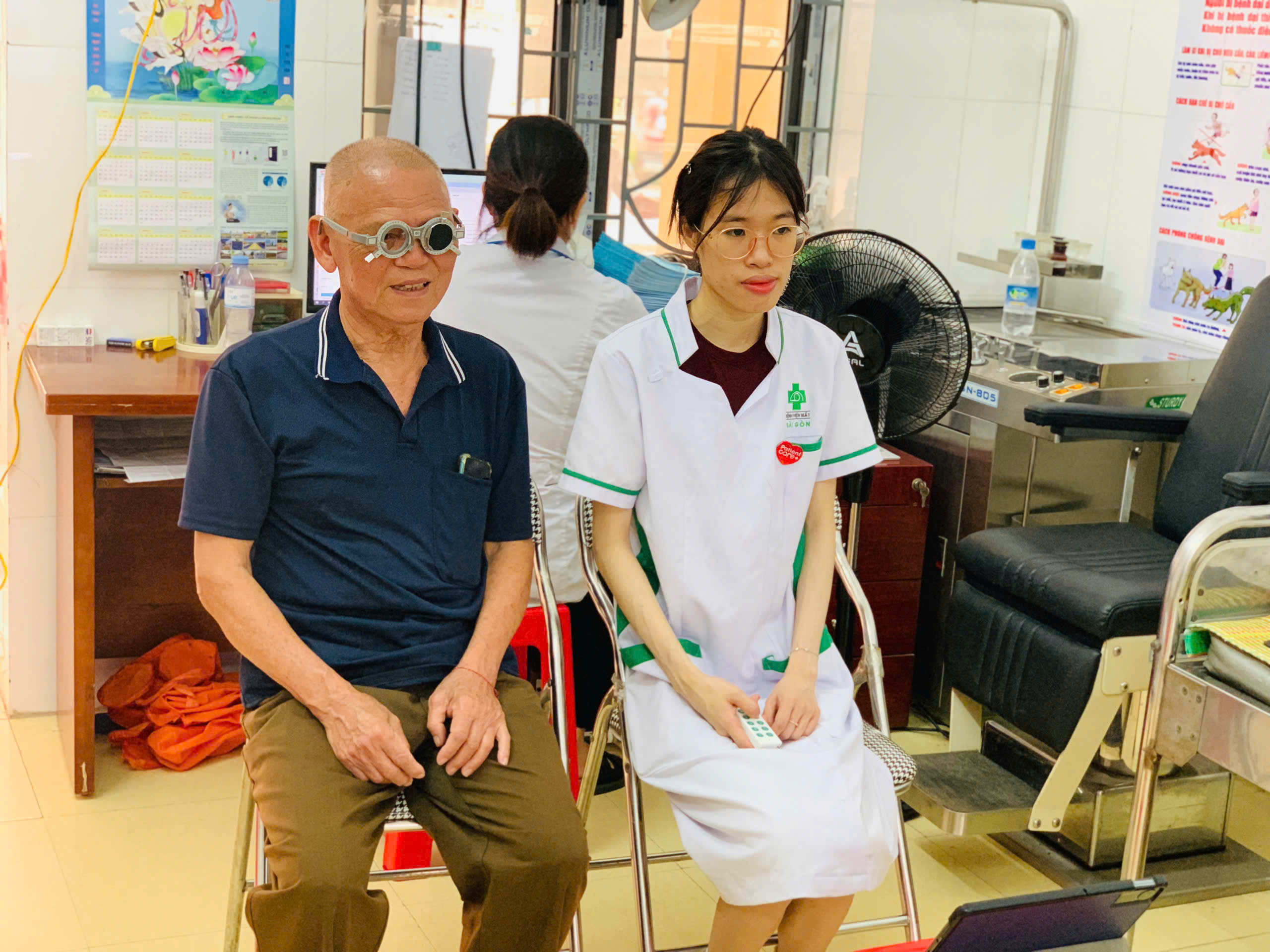 Quy trình khám được thực hiện chặt chẽ từ khâu tiếp đón, đo thị lực sơ bộ đến khám chuyên khoa và tư vấn. Đối với các trường hợp bệnh lý nhẹ, người dân sẽ được cấp đơn thuốc ngay tại chỗ; với các trường hợp nặng như đục thủy tinh thể cần can thiệp, bác sĩ sẽ cấp giấy hẹn hoặc hướng dẫn chuyển tuyến điều trị kịp thời.