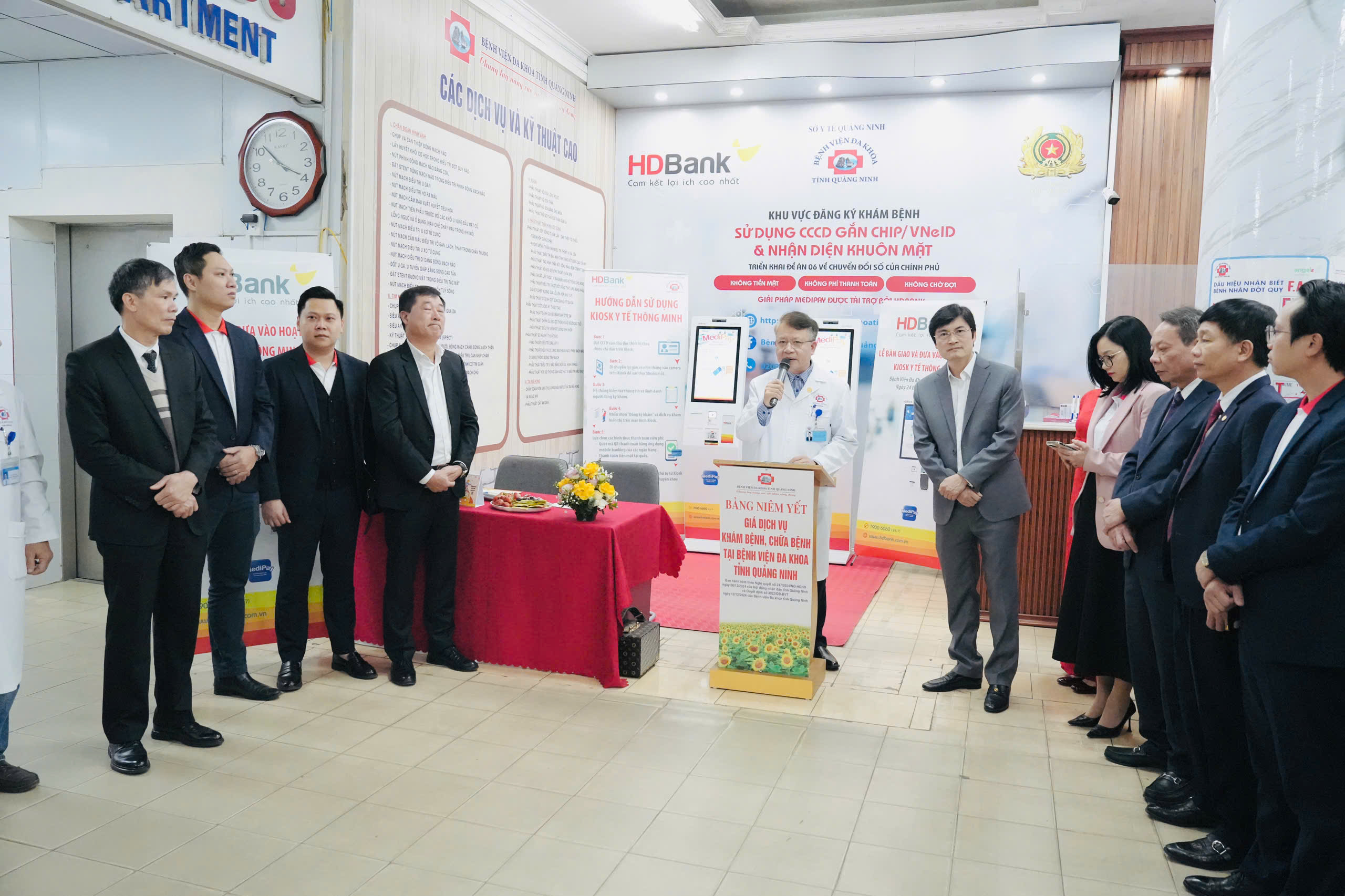 Tham dự buổi lễ có đồng chí Nguyễn Trọng Diện – Giám đốc Sở Y tế Quảng Ninh, đồng chí Trịnh Văn Mạnh – Phó Giám đốc Sở Y tế, đại diện lãnh đạo Công an tỉnh Quảng Ninh, lãnh đạo các bệnh viện và trung tâm y tế trên địa bàn tỉnh. Về phía Ngân hàng HDBank chi nhánh Quảng Ninh có ông Đặng Xuân An, Giám đốc chi nhánh, bà Lê Thị Hường, Phó Giám đốc chi nhánh, cùng các cán bộ, nhân viên của Ngân hàng – đơn vị tài trợ hệ thống Kiosk y tế thông minh.