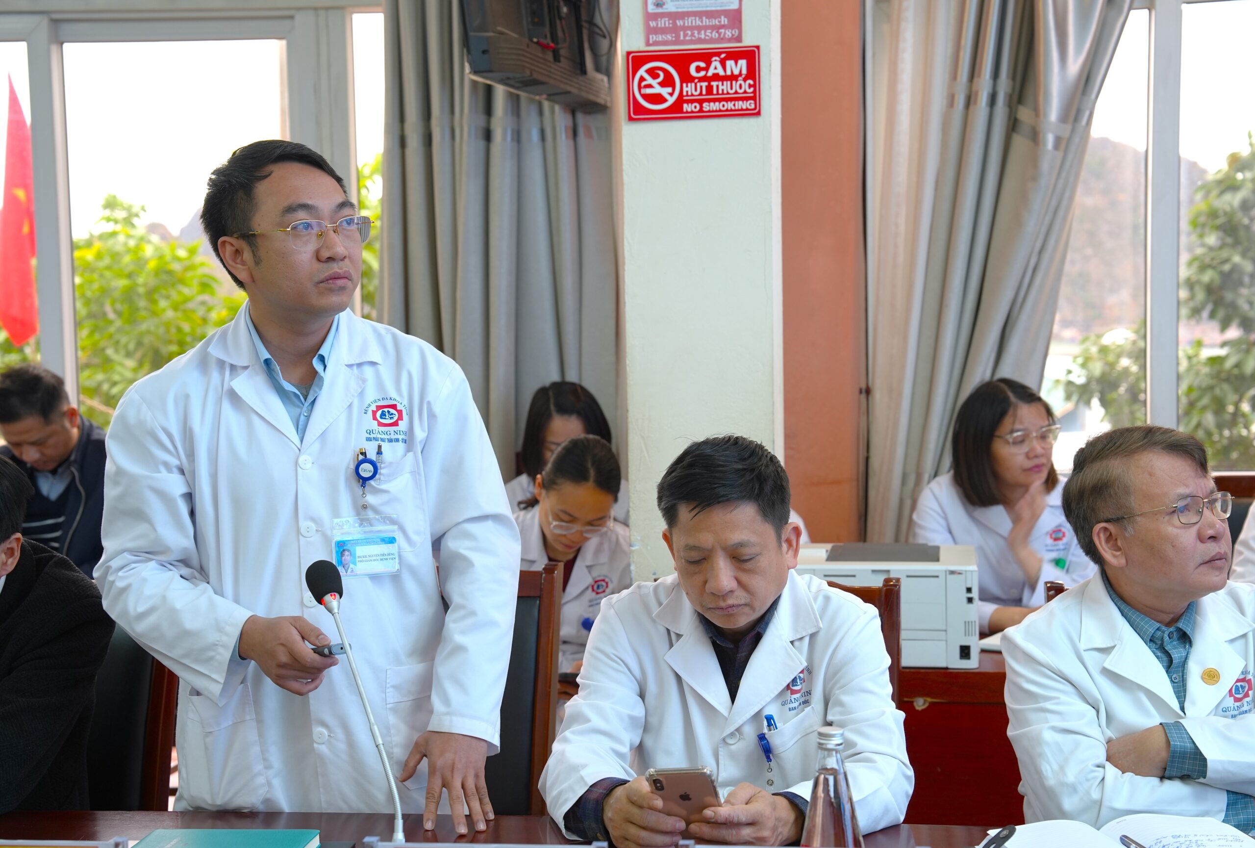 Bác sĩ Nguyễn Bá Việt, Giám đốc Bệnh viện Đa khoa tỉnh phát biểu tại hội nghị