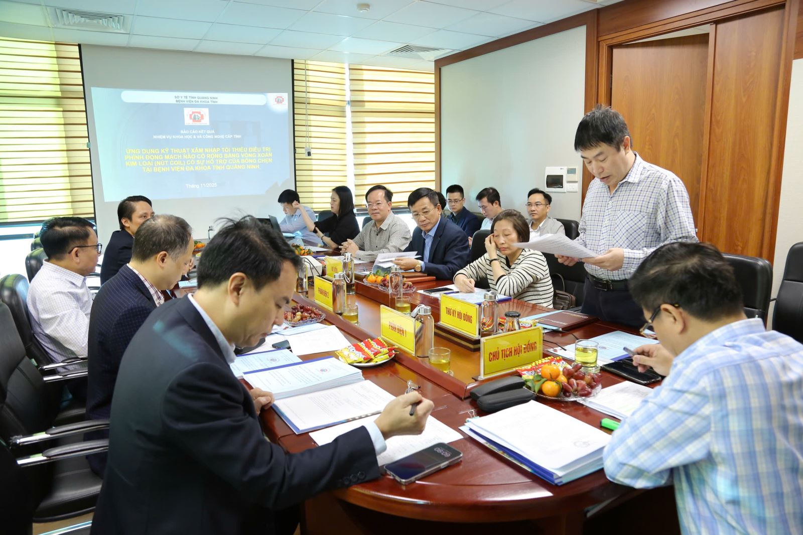 Nghiệm thu nhiệm vụ KH&CN cấp tỉnh: “Ứng dụng kỹ thuật xâm nhập tối thiểu điều trị phình động mạch não cổ rộng bằng vòng xoắn kim loại (nút Coil) có sự hỗ trợ của bóng chẹn tại Bệnh viện Đa khoa tỉnh Quảng Ninh”