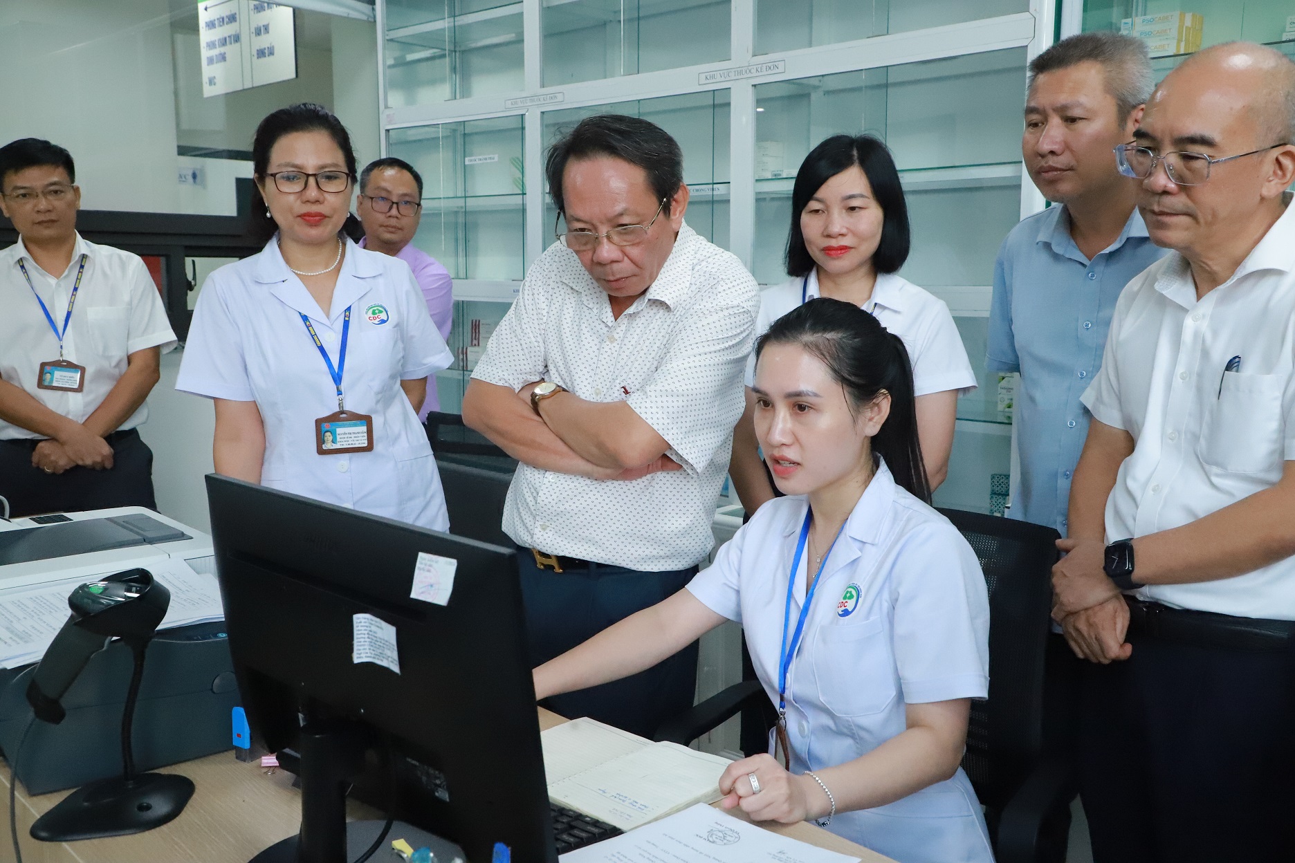 Cán bộ khoa phòng, chống HIV/AIDS CDC Quảng Ninh giám sát việc quản lý người bệnh qua phần mềm HMED tại phòng khám ngoại trú, Bệnh viện Đa khoa tỉnh Quảng Ninh