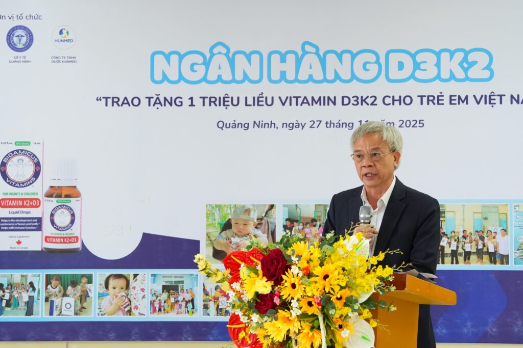 Phát biểu tại chương trình, đồng chí Lê Minh Sơn – Phó Giám đốc Sở Y tế Quảng Ninh trân trọng cảm ơn sự hỗ trợ thiết thực và kịp thời từ Quỹ Bảo trợ trẻ em Việt Nam, đồng thời gửi lời cảm ơn sâu sắc tới Công ty TNHH Dược Hunmed – đơn vị đã đồng hành mang đến nguồn vitamin chất lượng cho trẻ em Quảng Ninh. Đồng chí cho rằng trong bối cảnh nhiều trẻ em vùng khó khăn còn thiếu điều kiện chăm sóc dinh dưỡng, nguồn hỗ trợ Vitamin D3K2 lần này có ý nghĩa rất lớn, giúp trẻ trong giai đoạn 0–3 tuổi được củng cố nền tảng sức khỏe toàn diện. Đồng thời mong muốn tiếp tục nhận được sự chung tay của các tổ chức và doanh nghiệp để thực hiện nhiều chương trình chăm sóc, bảo vệ trẻ em, góp phần xây dựng thế hệ tương lai sức khỏe tại Quảng Ninh.