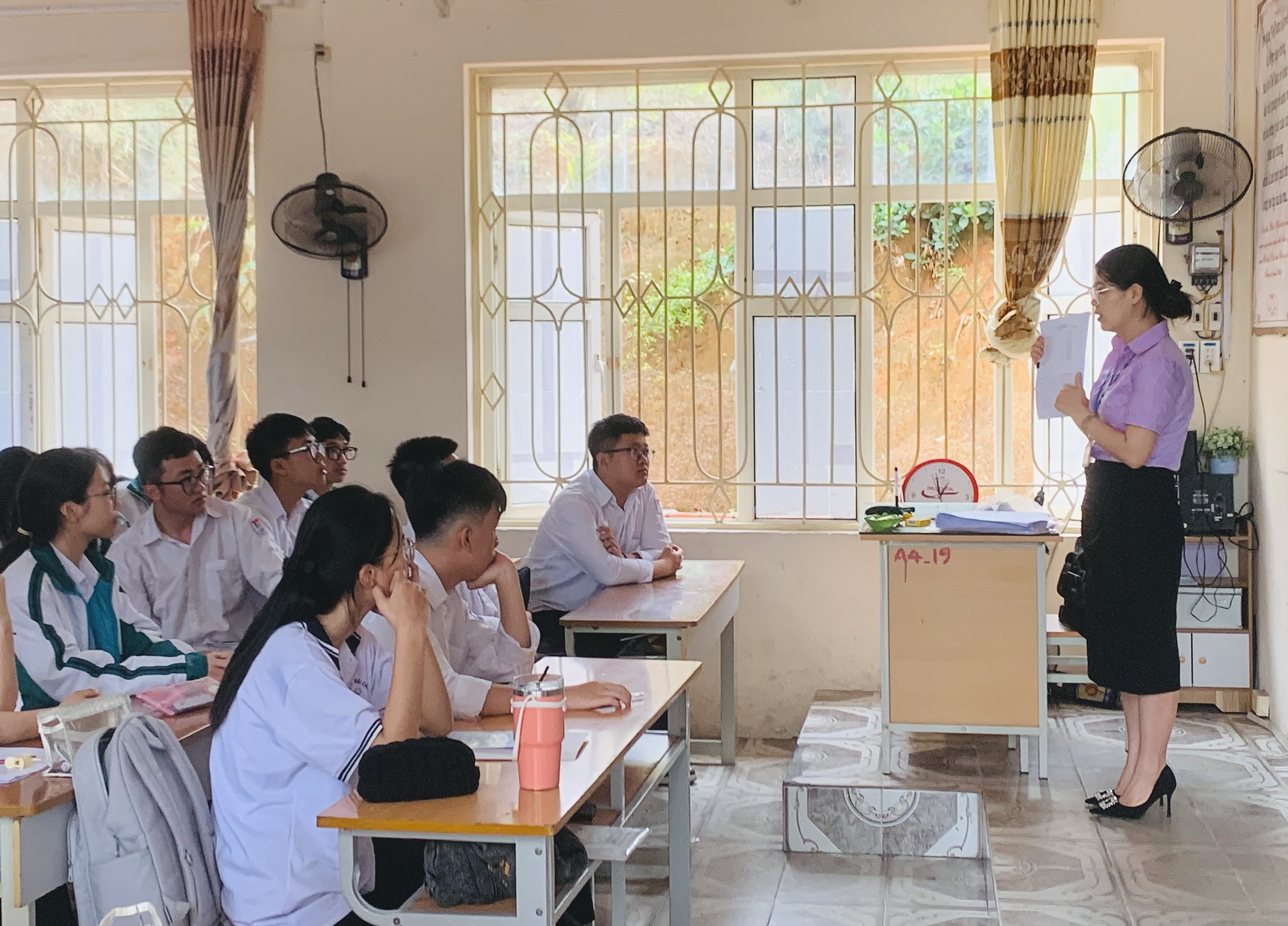 Cán bộ CDC Quảng Ninh thực hiện điều tra hành vi sức khỏe học sinh tại Trung tâm Giáo dục nghề nghiệp và Giáo dục thường xuyên Tiên Yên