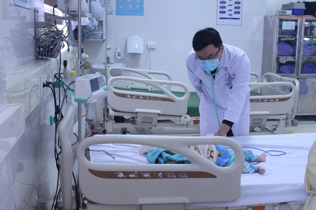 Bác sĩ CKII. Dương Văn Linh, Trưởng khoa Khám bệnh, Bệnh viện Sản Nhi Quảng Ninh thăm khám cho bệnh nhi