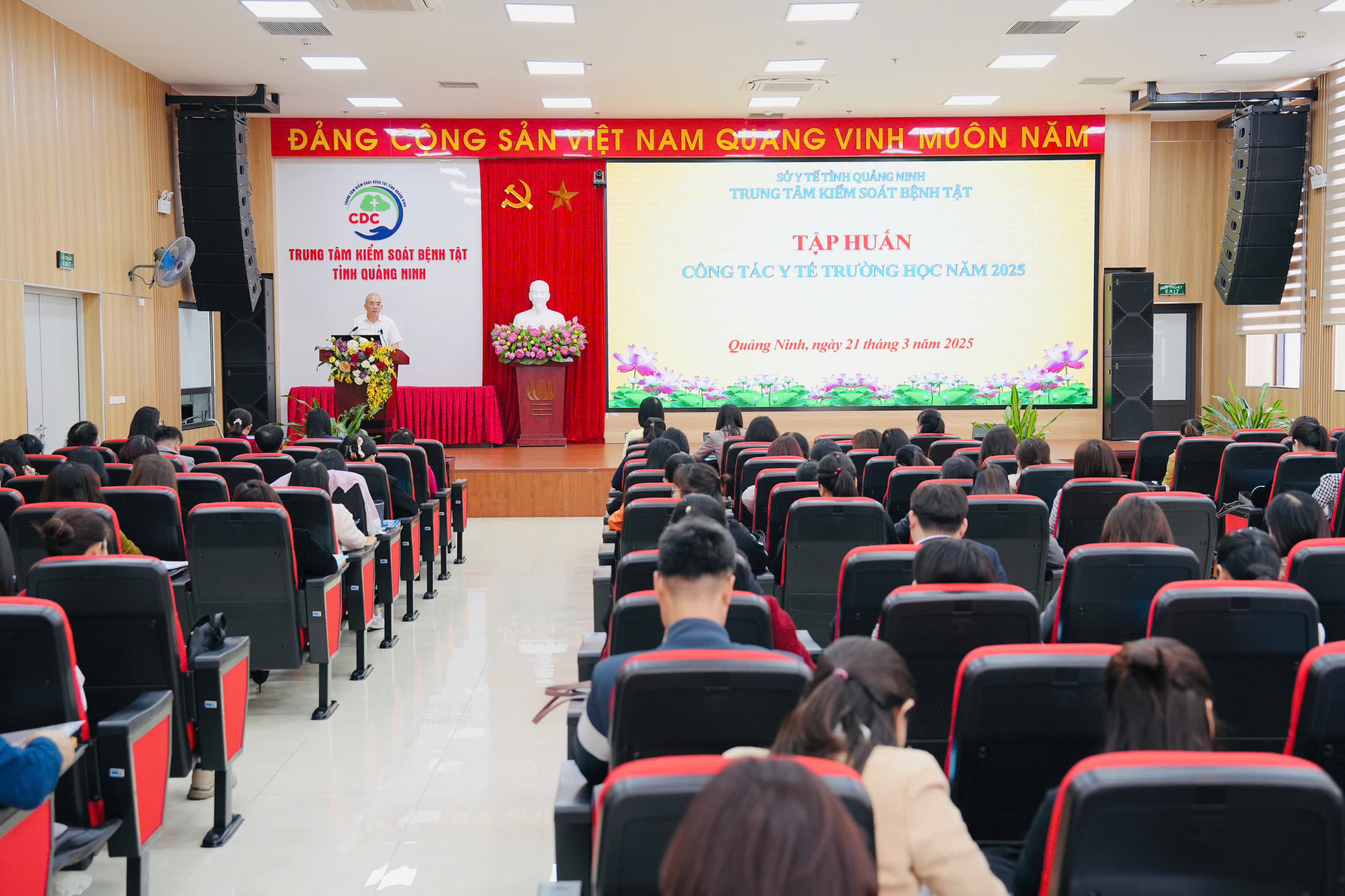 Ngày 21/3/2025, tại thành phố Hạ Long, Trung tâm Kiểm soát bệnh tật (CDC) tỉnh Quảng Ninh đã tổ chức lớp tập huấn công tác y tế trường học cho 158 học viên trên địa bàn thành phố. Chương trình nằm trong khuôn khổ triển khai kế hoạch tập huấn công tác y tế trường học năm 2025 trong toàn tỉnh. Đồng chí Vũ Quyết Thắng, Giám đốc Trung tâm Kiểm soát bệnh tật tỉnh tham dự, phát biểu chỉ đạo khai mạc lớp tập huấn.