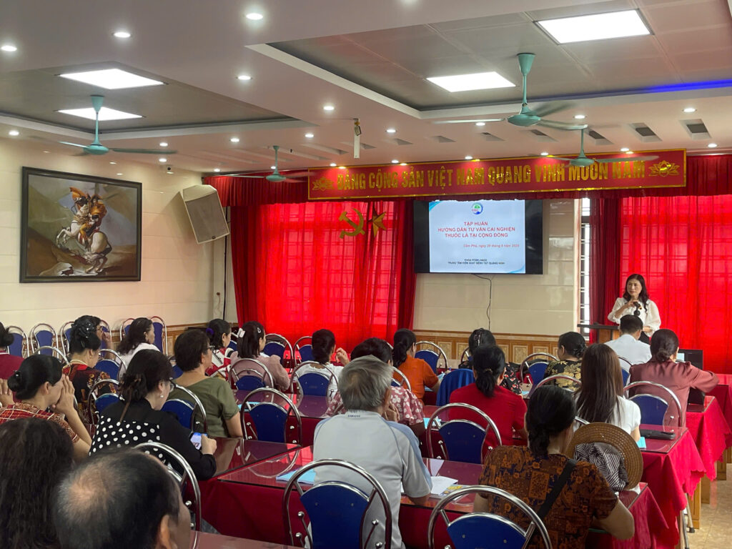 Ngày 29/8, Trung tâm Kiểm soát bệnh tật (CDC) tỉnh Quảng Ninh phối hợp với Trung tâm Y tế Cẩm Phả tổ chức lớp tập huấn hướng dẫn tư vấn cai nghiện thuốc lá tại cộng đồng cho đội ngũ cán bộ y tế tuyến xã, nhân viên y tế thôn/bản và cộng tác viên tham gia hoạt động phòng, chống tác hại thuốc lá (PCTH thuốc lá) tại địa phương.