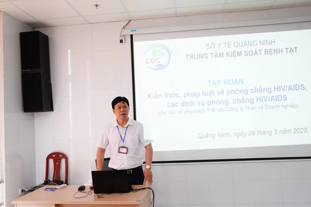 Hưởng ứng Tháng hành động về an toàn vệ sinh lao động năm 2025, ngày 09/5/2025, Trung tâm Kiểm soát bệnh tật (CDC) tỉnh Quảng Ninh đã tổ chức lớp tập huấn cung cấp kiến thức, pháp luật về phòng, chống HIV/AIDS và các dịch vụ liên quan cho 35 cán bộ phụ trách Y tế đến từ các Công ty Than và Doanh nghiệp trên địa bàn tỉnh.