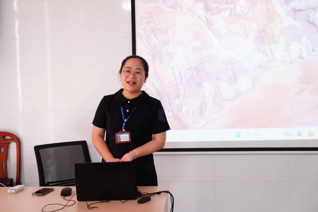 Thạc sĩ Nguyễn Hoài Thu, Phó Trưởng khoa phòng, chống HIV/AIDS truyền đạt thông tin, kiến thức tại lớp tập huấn