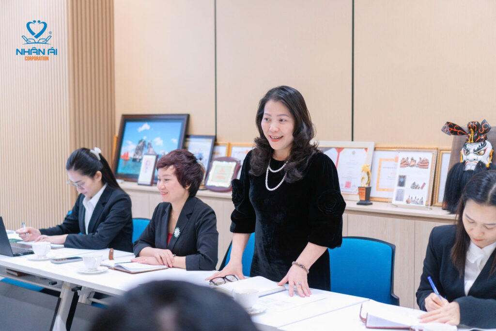 Bà Nguyễn Thị Kim Thanh – Tổng giám đốc Công ty Cổ phần quốc tế Nhân Ái phát biểu tại buổi làm việc