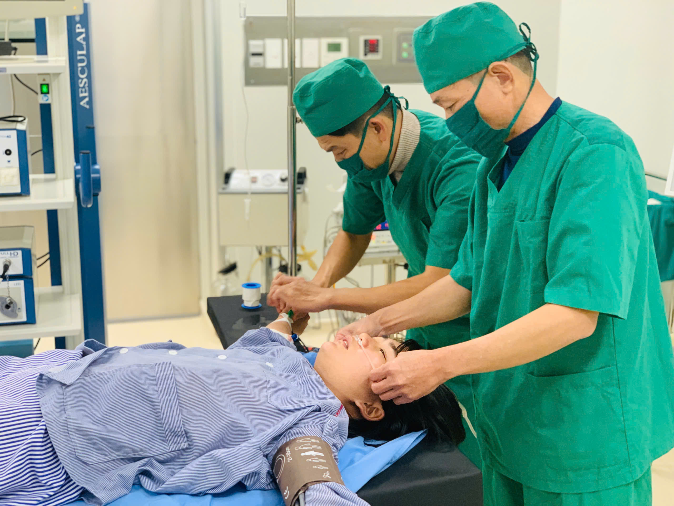 Bác sĩ Thưởng thực hiện gây mê hồi sức và tham gia phẫu thuật cho người bệnh