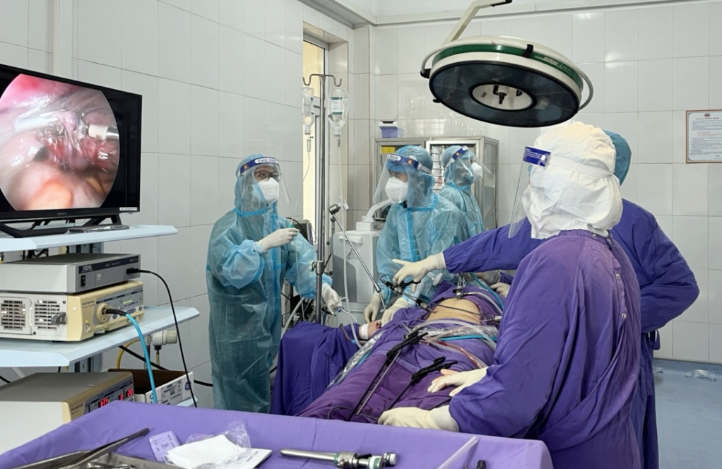Cũng từ việc làm chủ kỹ thuật khó, các y, bác sĩ đã kịp thời cấp cứu cho những bệnh nhân vừa mắc Covid-19 vừa mắc những bệnh lý khác. Tại phòng mổ cho F0 tại khu cách ly Covid-19, các bác sĩ Khoa Phẫu thuật thần kinh – cột sống (Bệnh viện Đa khoa tỉnh) đã kịp thời phẫu thuật cố định cột sống và giải phóng chèn ép tuỷ cho bệnh nhân mắc Covid-19. Hay trường hợp nữ bệnh nhân 28 tuổi dương tính Covid-19 nhập viện trong tình trạng vỡ khối chửa ngoài tử cung đã được các bác sĩ Bệnh viện Đa khoa tỉnh kịp thời cấp cứu, phẫu thuật nội soi thành công, cắt khối chửa ngoài tử cung ngay trong khu cách ly.